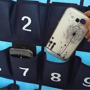 Blue and Yellow Numbered Classroom Phone Organizer Storage Over Door Organizer
