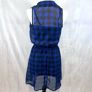 Blue and black plaid button top dress size small
