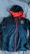 Stylish blue hoodie with orange accents. Features a zip-up front and hood.