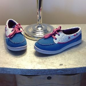 Blue and pink boat shoes