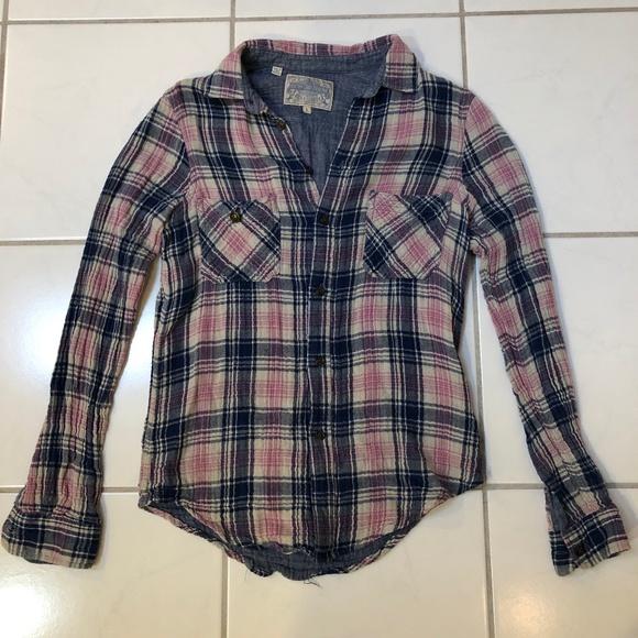 Blue and pink flannel. Super soft and in great condition! Perfect for summer nights! Size large, but runs small!