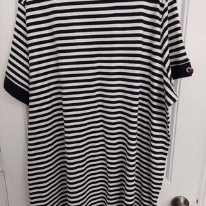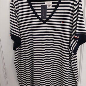 Blue and white striped casual plus size dress. Short sleeved, v neck dress. Tommy Hilfiger