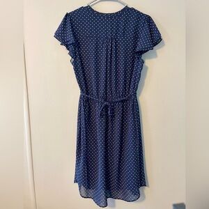 H&M Navy Blue Dress with White Polka Dots - Size 14 - hits at knee - has waist tie - worn and washed once