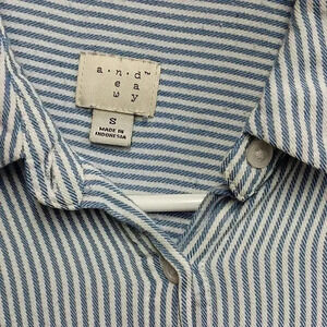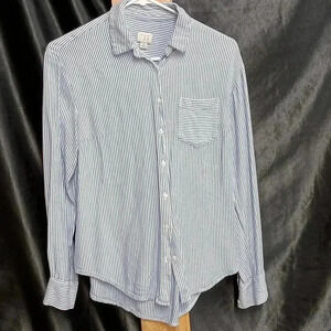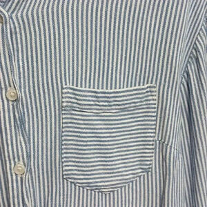 Blue and white striped button-up colored t-shirt size small