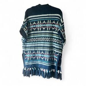 Blue and white striped cardigan with fringe XS/s runs big. No rips stains or holes