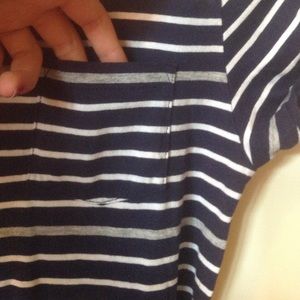 Blue and white striped dress which a left breast pocket. It's is t-shirt material and very comfortable. Has a small blue belt that ties in the back. No stains or snags. Open to offers.