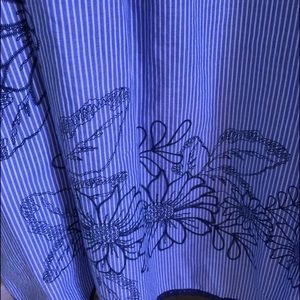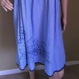 Blue and white striped strapless dress