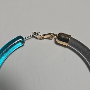 These pretty earrings showcase a unique half-and-half design, blending vibrant blue and clear acrylic.