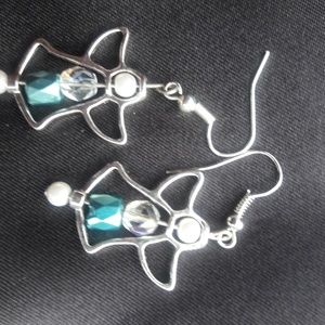 Too cute! Silver angel with white pearl 'head' and clear & blue bead accent. 10% discount on 3+ items!
