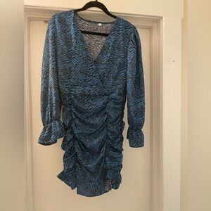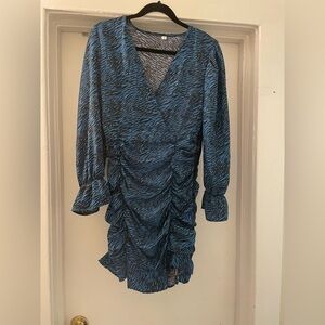 Blue animal print zebra scrunched long sleeve dress size Medium