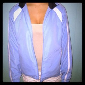 Large. Athletic Works. Light blue athletic jacket with dark grey and white accents. Front zipper and side pockets. Like new!