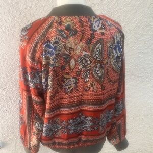 Blue b. Collection Burnt Orange Paisley Reversible Satin Bomber Jacket. Other Side is Army Green. Both side have pockets, zip closure.