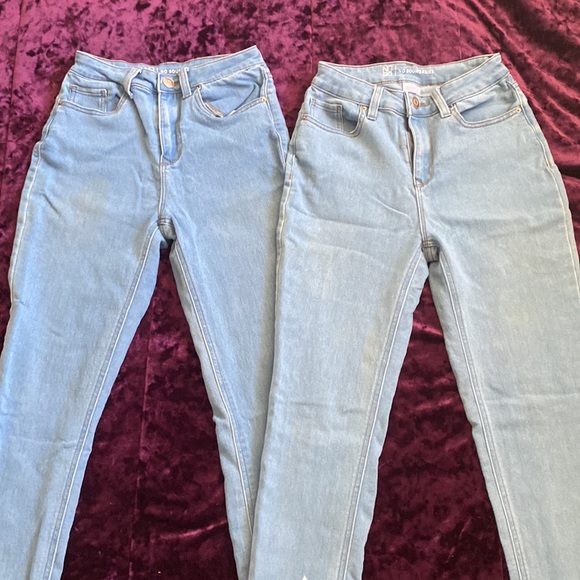 x2 Basic blue skinny jeans. Good conditions, just the stains (see pictures 4 & 5). Size 3. Selling because they are too big for me.