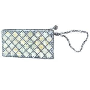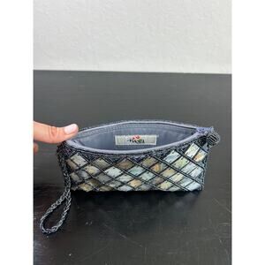 Blue bead details ,other of pearl- details wristlet- clutch- zips preowned