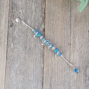 Stylish and fun accent to any outfit this 8" beaded charm bracelet with heart lobster claw clasp. Great pre-owned condition.