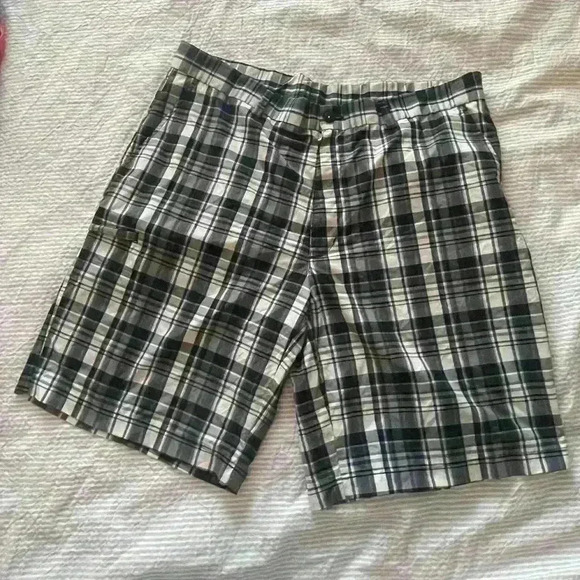 Blue black and white mens shorts! No marked size but I would say they are size medium/ large