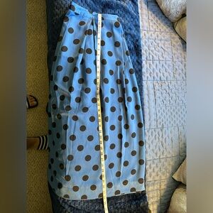 I bought this at Target and it’s so adorable!!! 100% polyester. This skirt goes down past the knees. It has a clasp and zipper on the side. It’s in perfect condition.