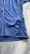 Used in excellent condition. Couldnt have been worn more than a handful of times. Smoke free home. Blue & black thinly striped track jacket size large. All in Motion. Has thumb holes and pockets. Fits a little oversized more like an XL. 87% recycled polyester, 13% spandex.