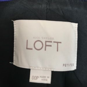 Blue Ann Taylor Loft blazer 00 petite. Slight tear on one pocket, but it doesn’t not affect the pocket. Worn for work a handful of times