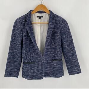 Blue blazer with faux leather accents Ann Taylor size 0 Petite