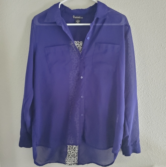 Royal blue blouse with leopard stripe in the back.