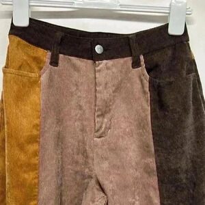 In very good condition, blue blush size small zipper front button top patchwork brown corduroy pants rise in the pants is about 12 inches and same of the pants is about 27 inches