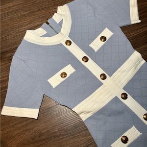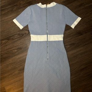 Blue bodycon preppy button up mini dress / cute elegant