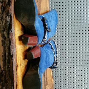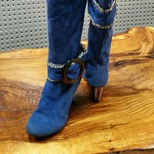 Loved these versatile suade blue boots with a belt that's moveable. Very nice and worn b 9nly a few times.