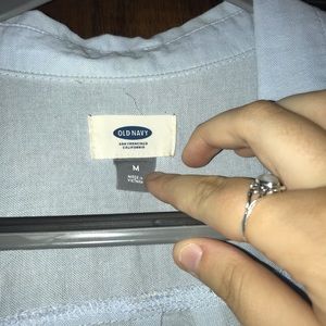 Old navy baby blue button down! This is a good quality shirt, I just didn’t get a chance to wear it. Size medium!