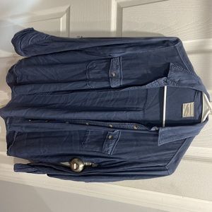 Blue button down. Appears wrinkled in photo but could easily be ironed.
