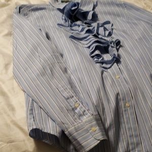 Cute blue/white stripe shirt with ruffles in middle