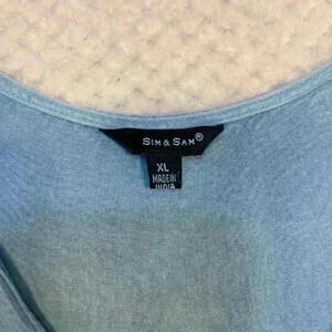 Blue button down tie short sleeve Sim & Sam sz S beachy resort vacation casual