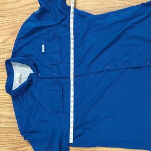 Blue button-down fishing shirt vented back roll-tab sleeves, Ocean + Coast XLT