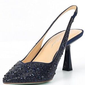 From Blue by Betsey Johnson, the Clark Rhinestone Slingback Pumps feature: