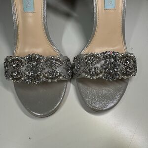 Blue by Betsey Johnson Juno Womens Sz 6 M Rhinestone Beaded Silver Heels Sandals