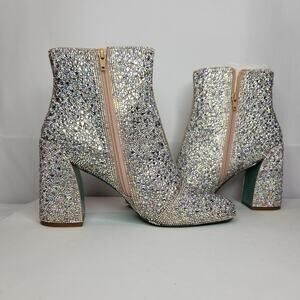 Blue by Betsey Johnson Women's Hugo Rhinestone Block Heel Booties Size 9.5 NWT
