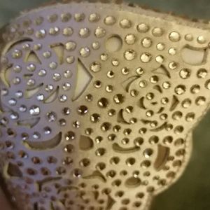 Adorable cutouts and rhinestones create the feel of sparkling lace! Pointed close toe. Extra rhinestones included. Excellent condition, only worn twice. only signs of wear on bottom and even that is minimal. Cute blush pink color.