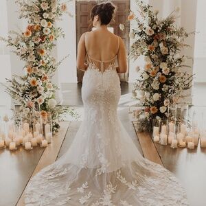 Blue by Enzoani Wedding Dress Style Rosemary (Unlined) size 12 in Ivory/Ivory/Nude. Only used as store sample. No imperfections.