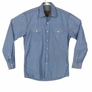Blue by Pronto Oumo Shirt Men M Blue Stripe Long Sleeve Casual Flap Pockets