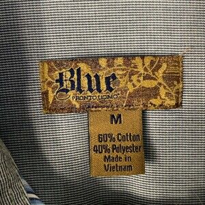 Blue by Pronto Oumo Shirt Mens M Blue Stripe Long Sleeve Casual Flap Pockets Flip Cuffs