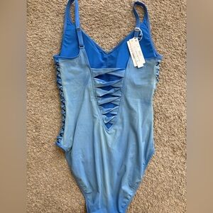 Blue by Rod Beattie Twisted Ladder-Trim One Piece Swimwear size 12 NWT