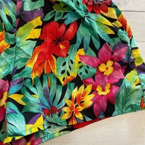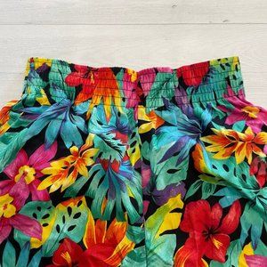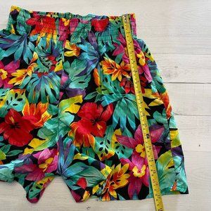 No size tag, fit like a medium/large, demensions in photos. Elastic waist, lots of stretch