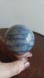 Blue calcite crystal sphere. 298g. Approx. 2.1" width. 7.5" circumference.