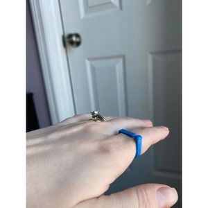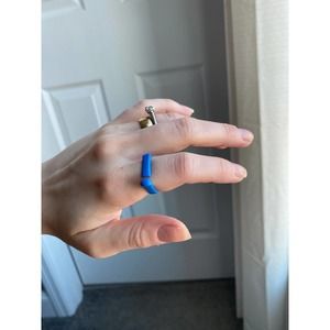 Blue chunky square disconnected bar ring, size 6.5, NEW. Y2k vibes. Nice color pop for anytime of year. So cute. Not adjustable--the material does not bend or anything. Sturdy quality. Refrain from getting wet.