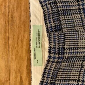 Blue cotton and wool blend Tartan High Waisted Trousers from Off-White.