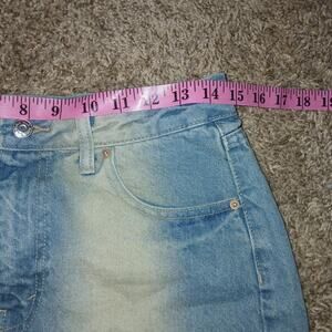 Blue cotton (denim like material) stonewashed miniskirt, size 4, measurements in photos. Worn once.