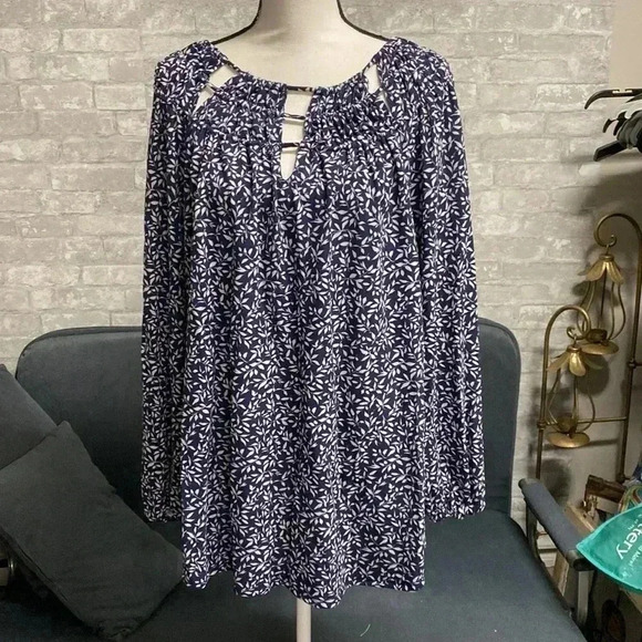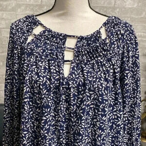 Blue & cream floral smock top shirt blouse