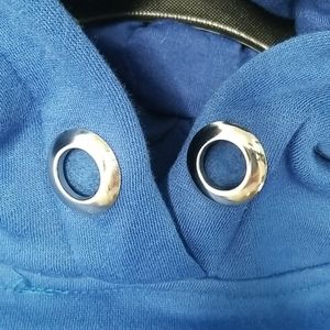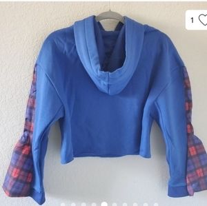 Nwt blue Lf Bsbw cropped hoodie sweatshirt. Super edgy, big bell silky plaid sleeves. Hardware detail around neck. Soft and cozy. Never worn. 38" across 18" length.