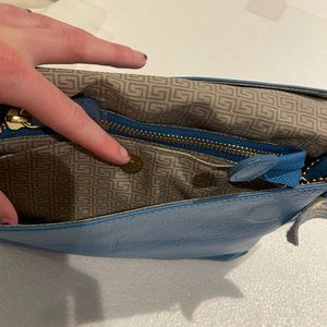 Small blue leather crossbody purse. It has never been used and is in perfect condition. Each purchase comes with a free tassel to go along with it.