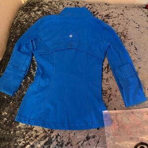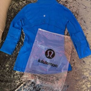 Vibrant blue jacket by lululemon. Features a full-zip front and zippered pockets.